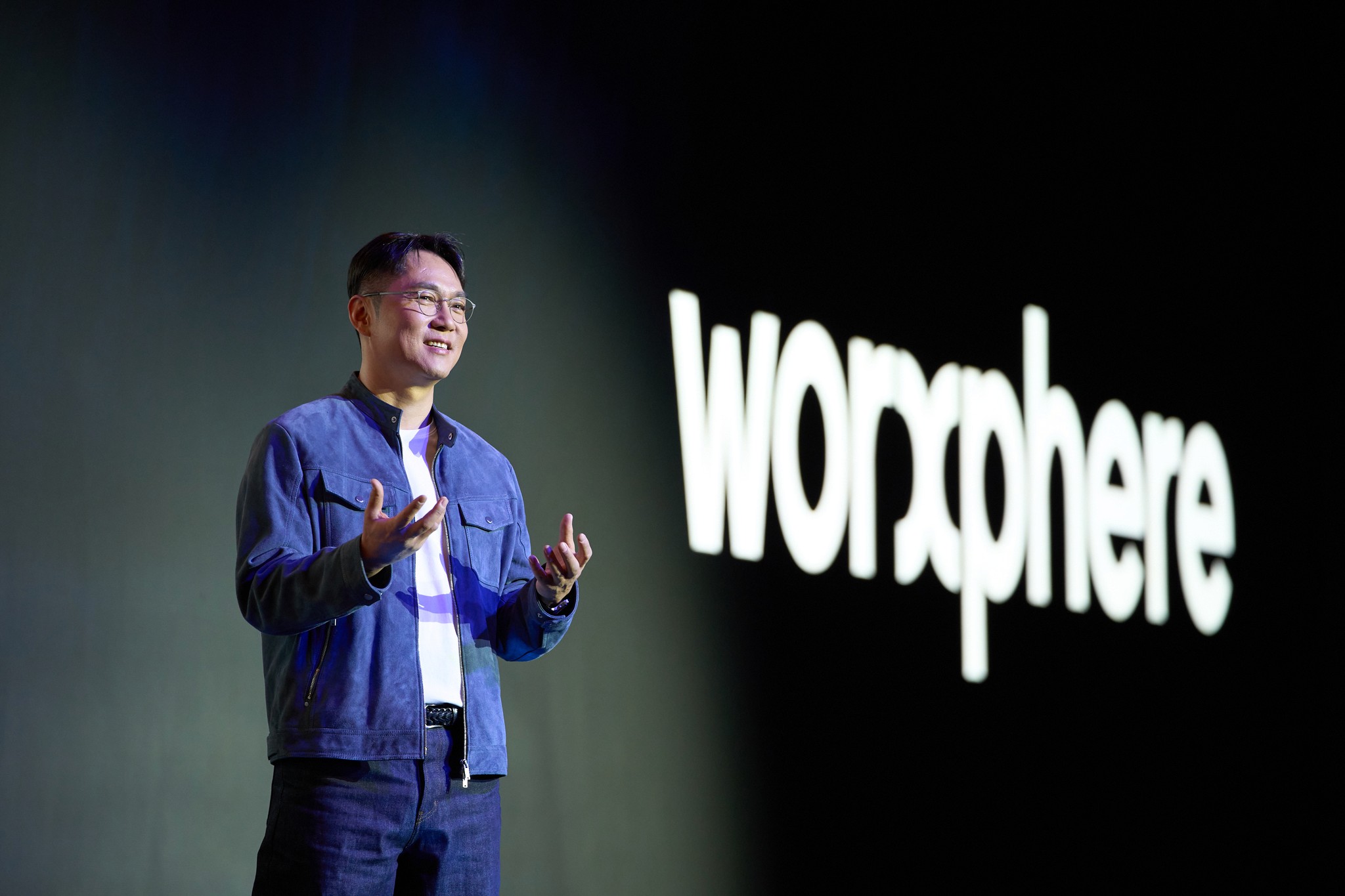기조연설을 맡은 윤현준 CEO가 잡코리아의 새로운 사명 ‘웍스피어’를 처음 공개하였을 때 카메라 플래시 세례가 쏟아졌습니다.